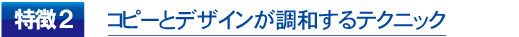 チラシ作成においてコピーとデザインの調和を考えます。コピーはジャンプ率やフォントの調整など。デザインは背景画像の設定、オブジェクトの効果、カラー調整など。コピーとデザインを調和させることでチラシのイメージを伝えることに役立ちます。